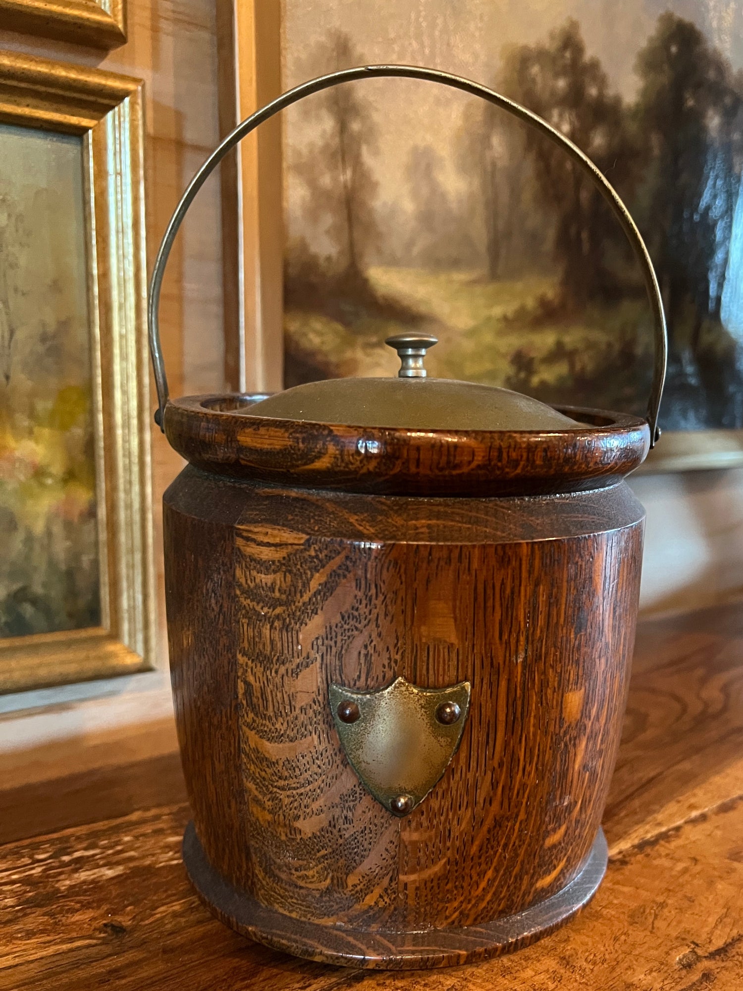 English Antique Oak Biscuit Barrel